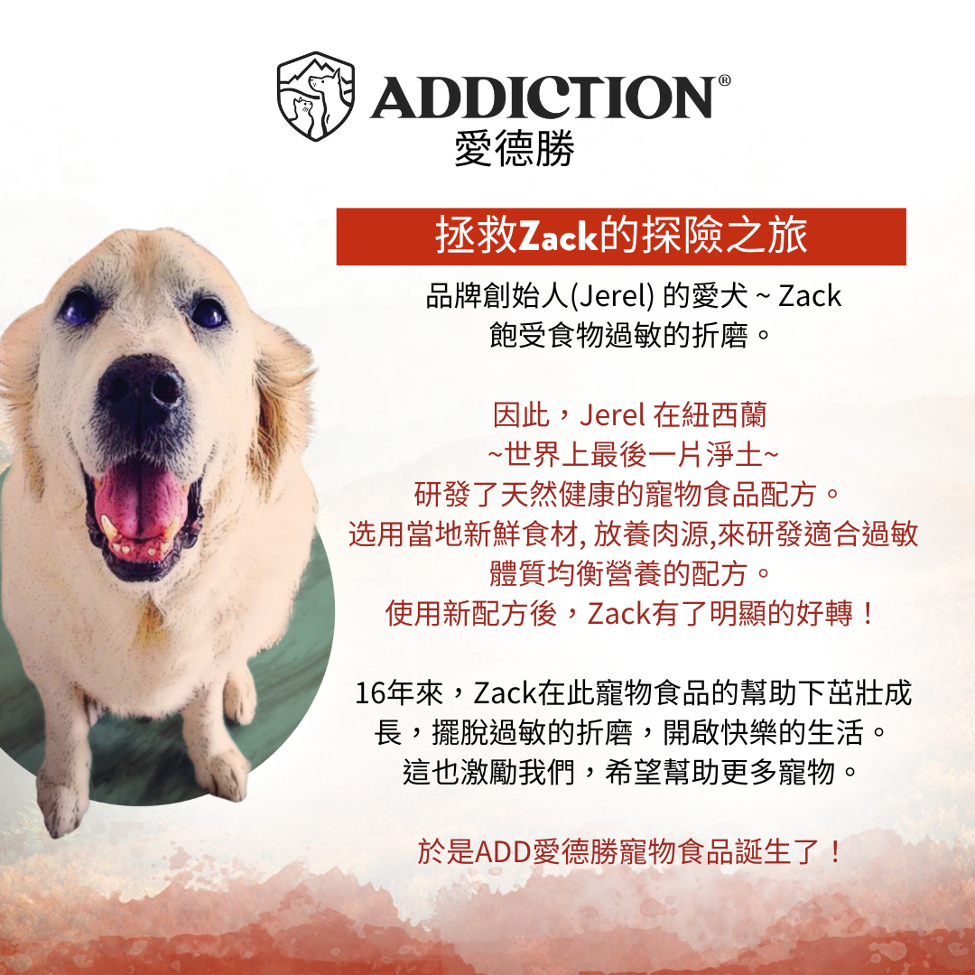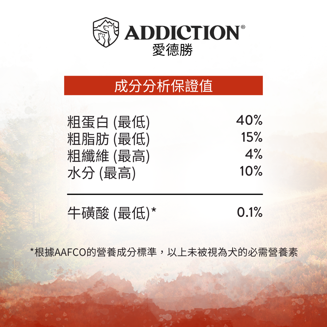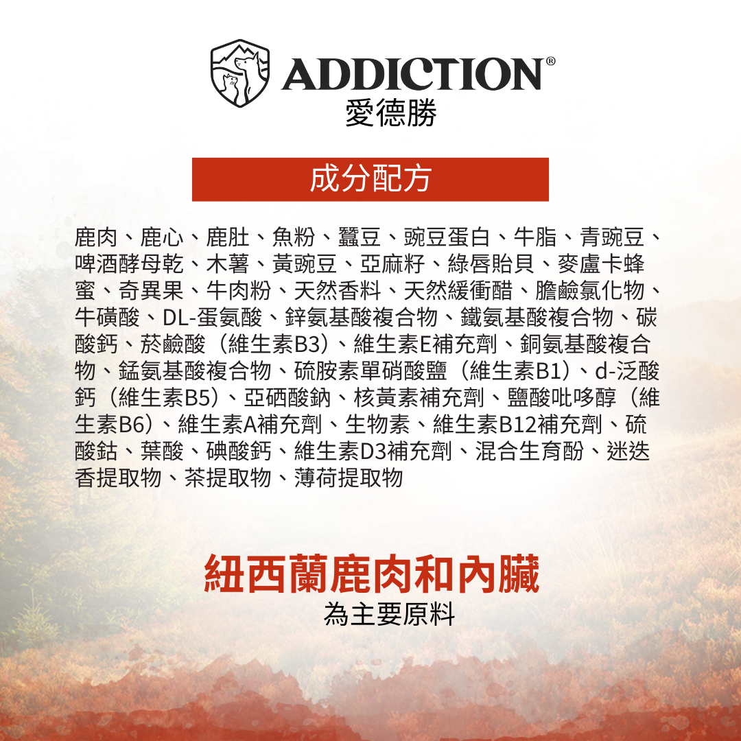 新型低敏蛋白:紐西蘭放養鹿肉為配料表首位,成分純淨,特別適合敏感體質犬隻