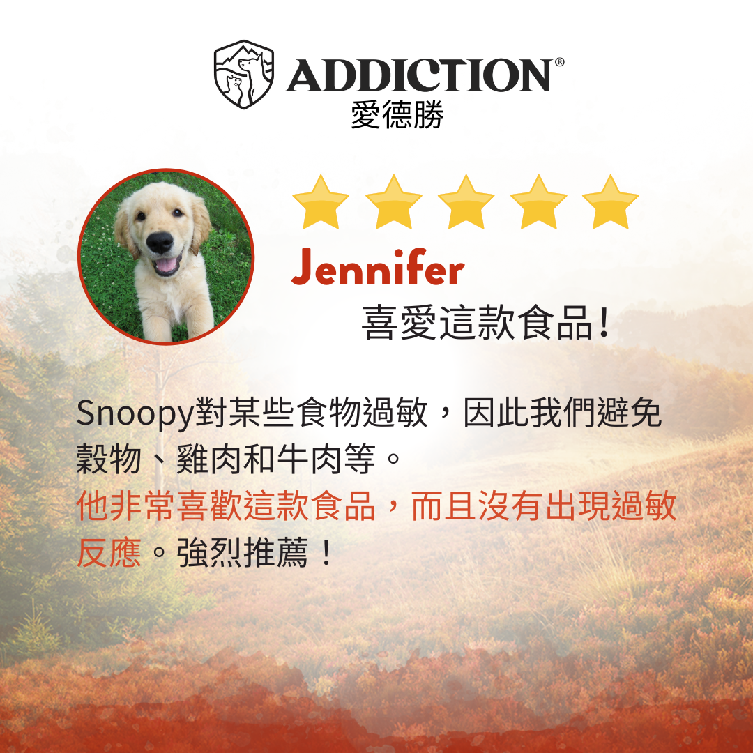 此配方適用於所有犬種及生命階段,尤其適合需要特殊蛋白質飲食的犬隻。