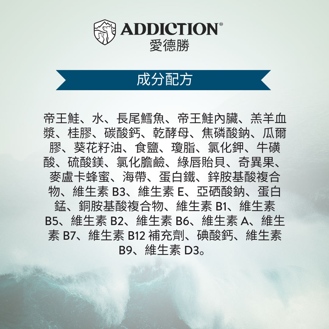 優質蛋白:配料表主要為紐西蘭帝王鮭魚、鱈魚及鮭魚內臟,提升營養消化率與原生風味