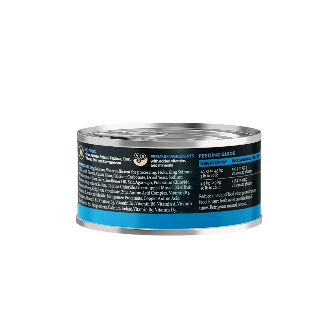 讓您的愛貓品嚐來自紐西蘭的野性滋味—珍島系列尊爵鮭魚饗宴(魚肉)貓罐。這款配方含高達90%的優質蛋白質,以帝王鮭魚、鱈魚及鮭魚內臟為核心原料,完美重現貓咪天生的全獵食飲食結構。配方特別添加綠唇貽貝、麥盧卡蜂蜜與奇異果等天然食材,提供全面均衡的營養支持,有助增強免疫力、促進消化吸收,全方位維護愛貓整體健康。產品採用無穀物、無麩質、無填充物的高蛋白配方,堅持肉類為配料表首位,既可作為主食餵食,也適合作為營養豐富的配餐,靈活匹配愛貓飲食需求。